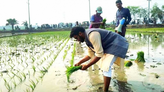 ভোট চাইতে গিয়ে কৃষকের সঙ্গে ধান রোপণ করলেন রাশেদ খান